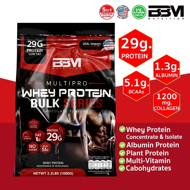BBM Whey Isolate เวย์โปรตีน 29g (Blend) เพิ่มกล้ามเนื้อ ช็อกโกแลต BCAA5.1g WPC, WPB, โปรตีนไข่ขาว